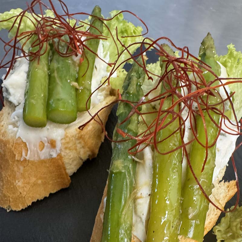 Birnenschiffchen mit luftgetrocknetem Schinken